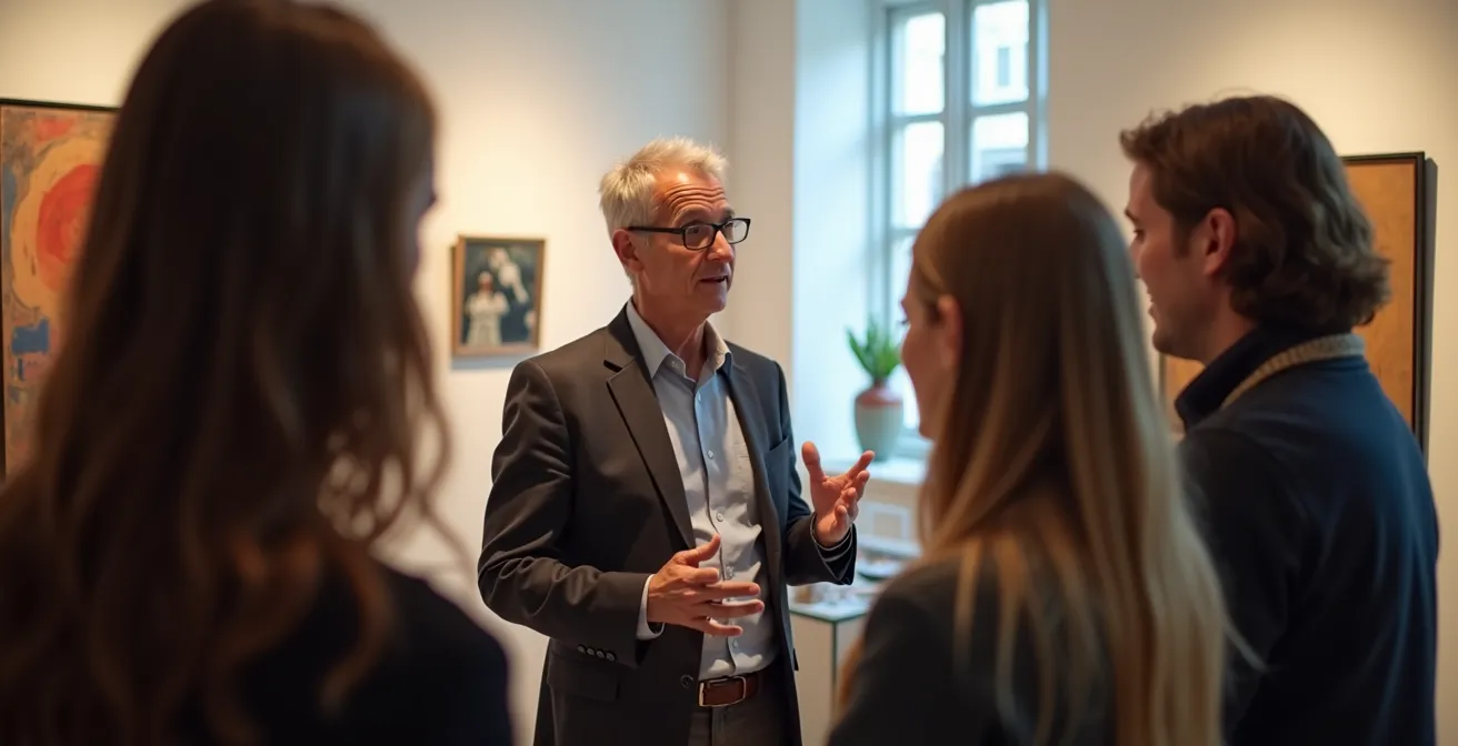 Die größte Angst im Publikum ist es, eine Frage zu stellen, die als banal, aggressiv oder schlichtweg „falsch“ empfunden wird und den Künstler in die Defensive treibt oder das Gespräch abwürgt. Fragen wie „Was soll das bedeuten?“, „Ist das Kunst?“ oder die direkte Frage nach dem Preis eines Werkes führen selten zu einem produktiven Austausch. Sie erzeugen Druck und implizieren oft ein Urteil, anstatt Neugier auszudrücken. Der Künstler fühlt sich entweder geprüft oder missverstanden.